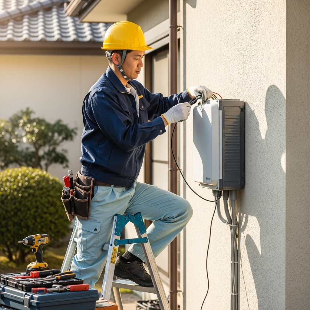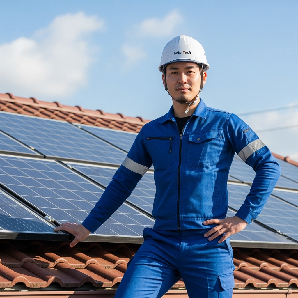 主な仕事は家庭用の太陽光発電、蓄電池の設置業務。